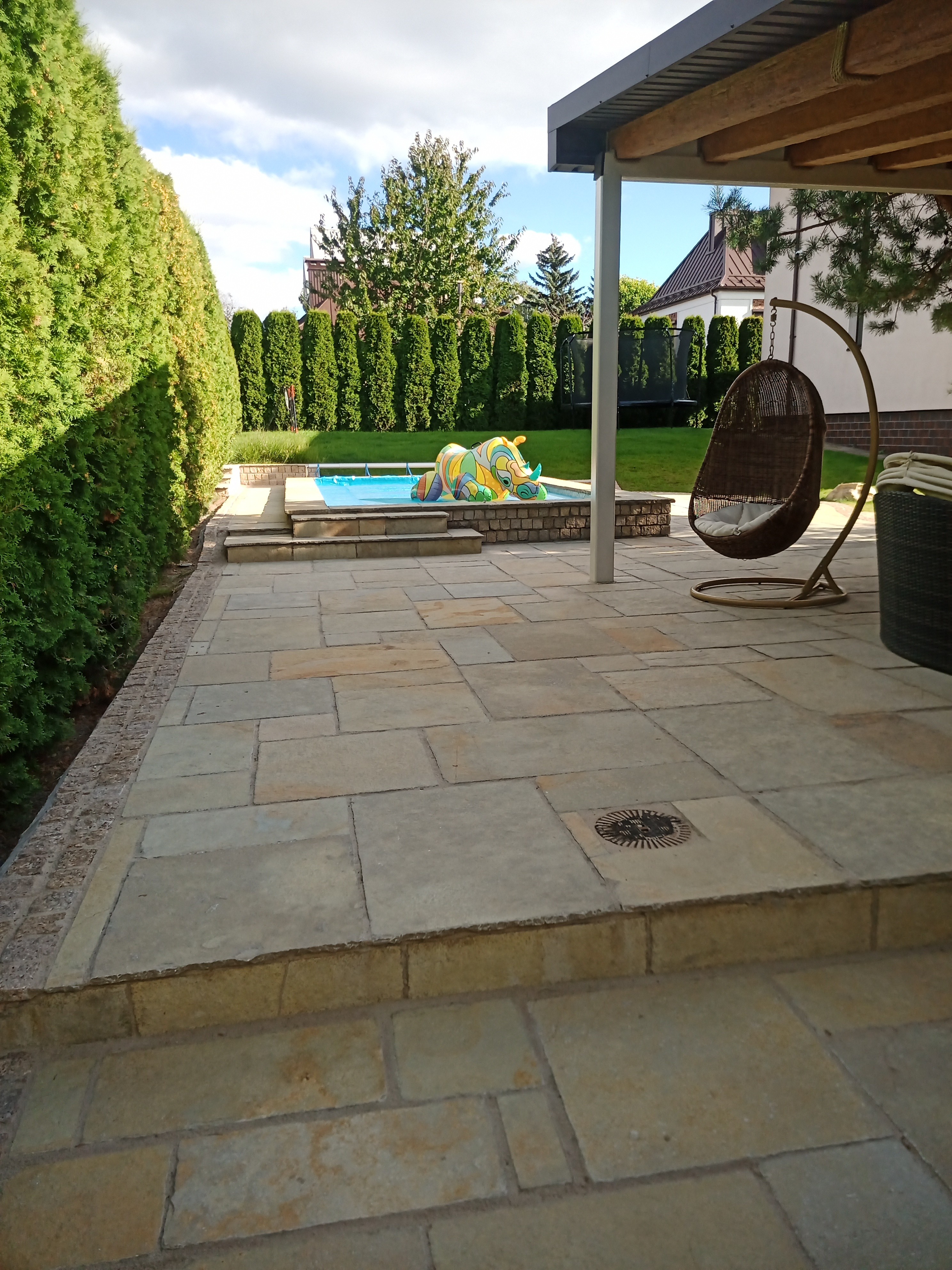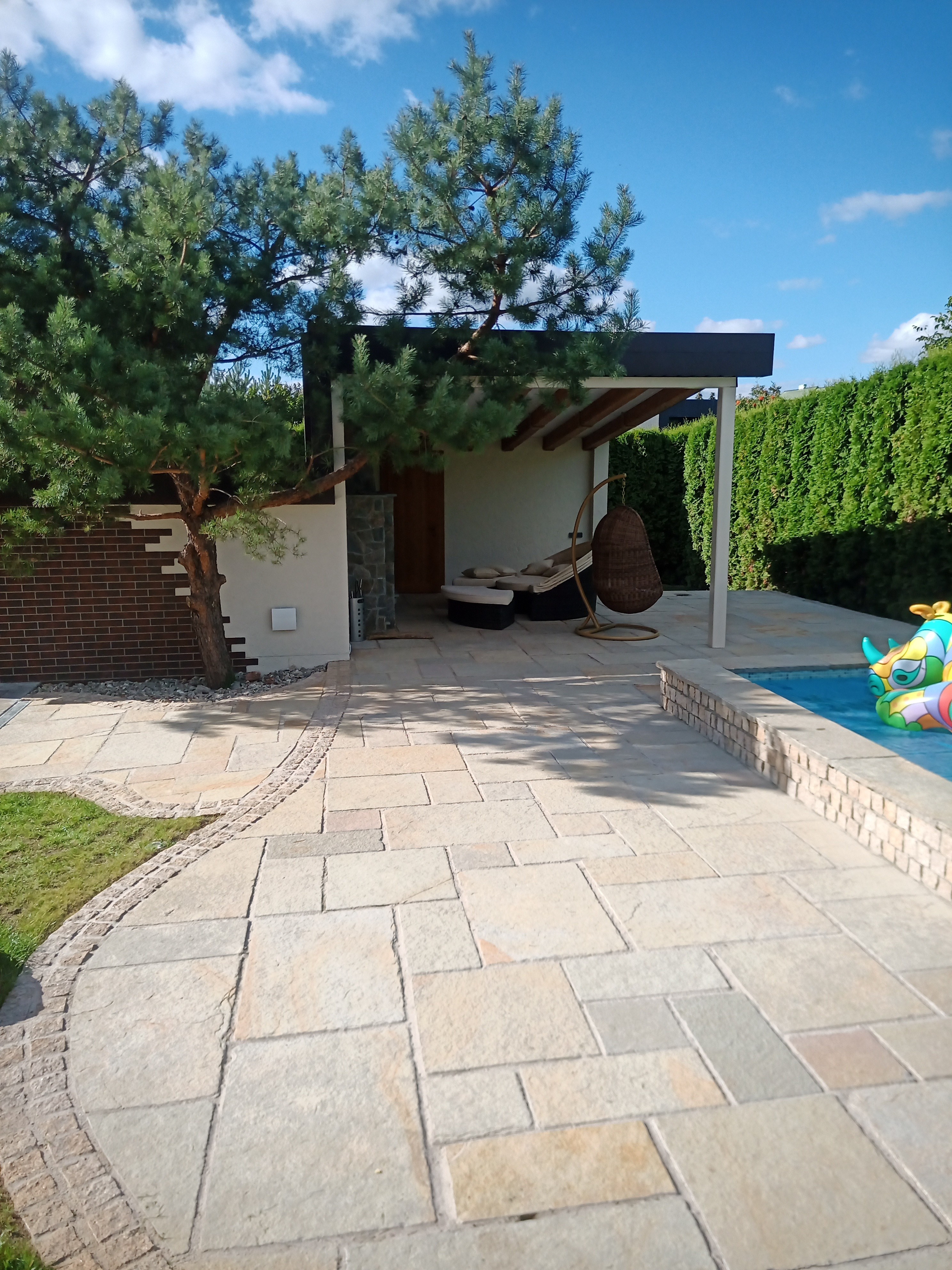 Smiltainio akmuo yra žinomas dėl savo šiltų, žemiškų atspalvių, kurie harmoningai dera su aplinka. Jo natūralios spalvos, nuo švelnių smėlio iki sodrių rudų tonų, sukuria jaukią ir natūralią atmosferą jūsų kieme. Tokia spalvų paletė ne tik šviesina erdvę, bet ir suteikia jai ramybės bei harmonijos jausmą.